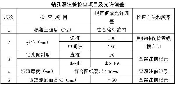 4.7钻孔灌桩桩的检查项目及检查方法见下表。